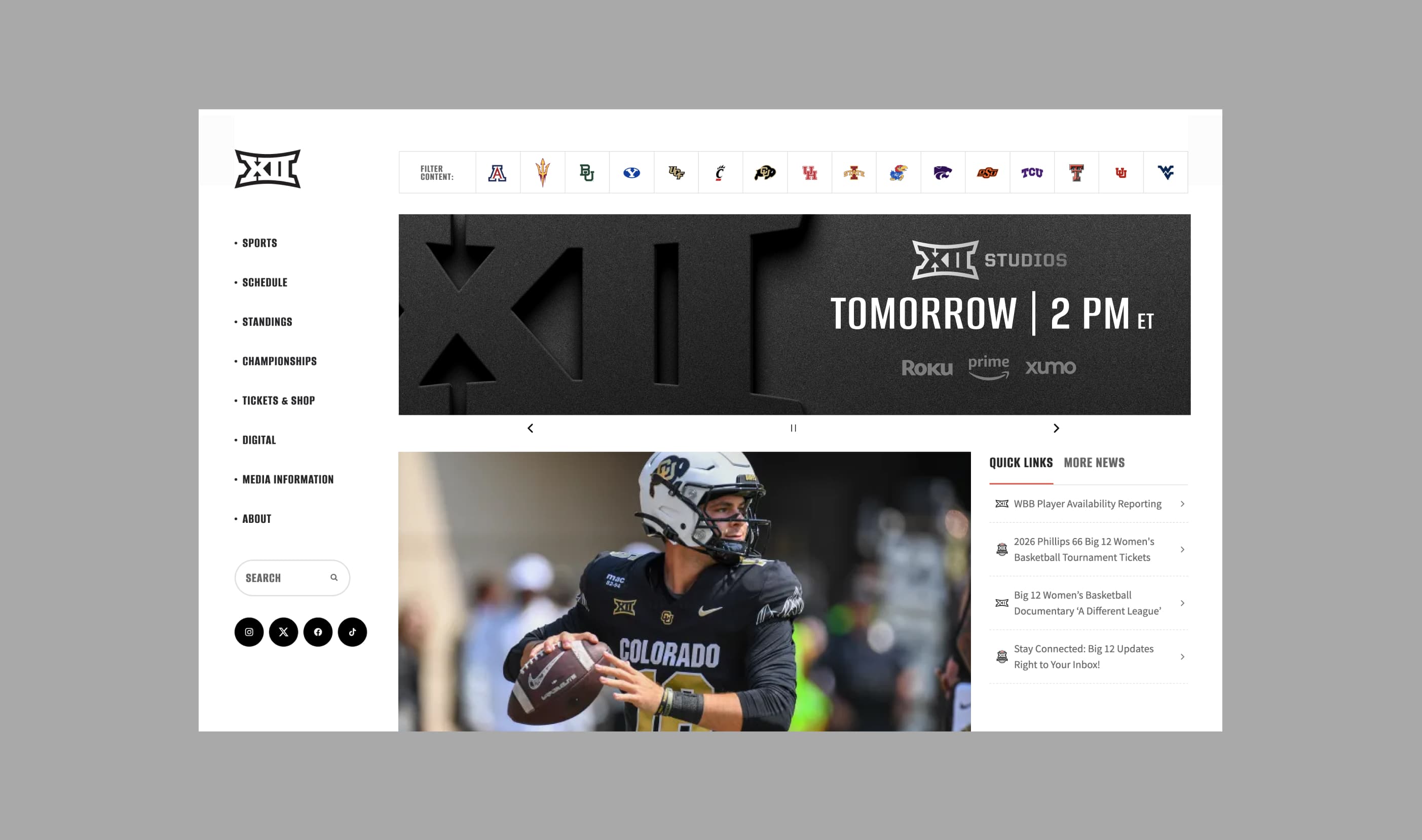 The broadcast identity translated naturally beyond live coverage into digital and social extensions. That flexibility allowed Big 12 Studios to show up consistently across platforms, reinforcing recognition and engagement as the conference’s audience and media presence continued to grow.
